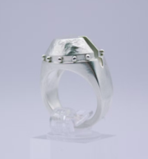 ‘Don’t wake me up’ depicts a small figure lying on a bed of sorts. The ring itself is reminiscent of Victorian cameo ring, which Conlon says was an inspiration for the design of the piece. The piece symbolises how Caer Ibormeith appears to Oengus while he sleeps. The silverwork is a beautiful display of craftsmanship with the detail carving of the bed the figure lies on giving it a soft and plush look.