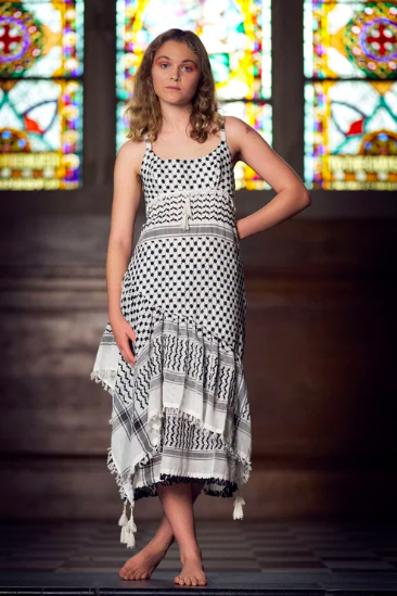 Fashion cannot function by ignoring politics; fashion has always been influenced by the world around it. Making it natural for designers to utilise it to encourage social change. For Dublin Independent Fashion Week, in September, Martin recreated a dress he made for a friend out of Keffiyeh scarves to raise money for Palestine. His friend loved the dress Bella Hadid wore at the Cannes Film Festival 2024, designed by a New York-based brand created by Michael Sears and Hushidar Mortezaie. After completing the dress in black, Martin posted it online to receive a positive response. Martin created the dress again for auction; the dress sold for €176 and was given to charity. He worked with a visual artist from Gaza during DIFW to organise the donation to two charities, Gaza Go Bragh and Tea Collective. Martin has a strong belief in meaningful, action-based activism.